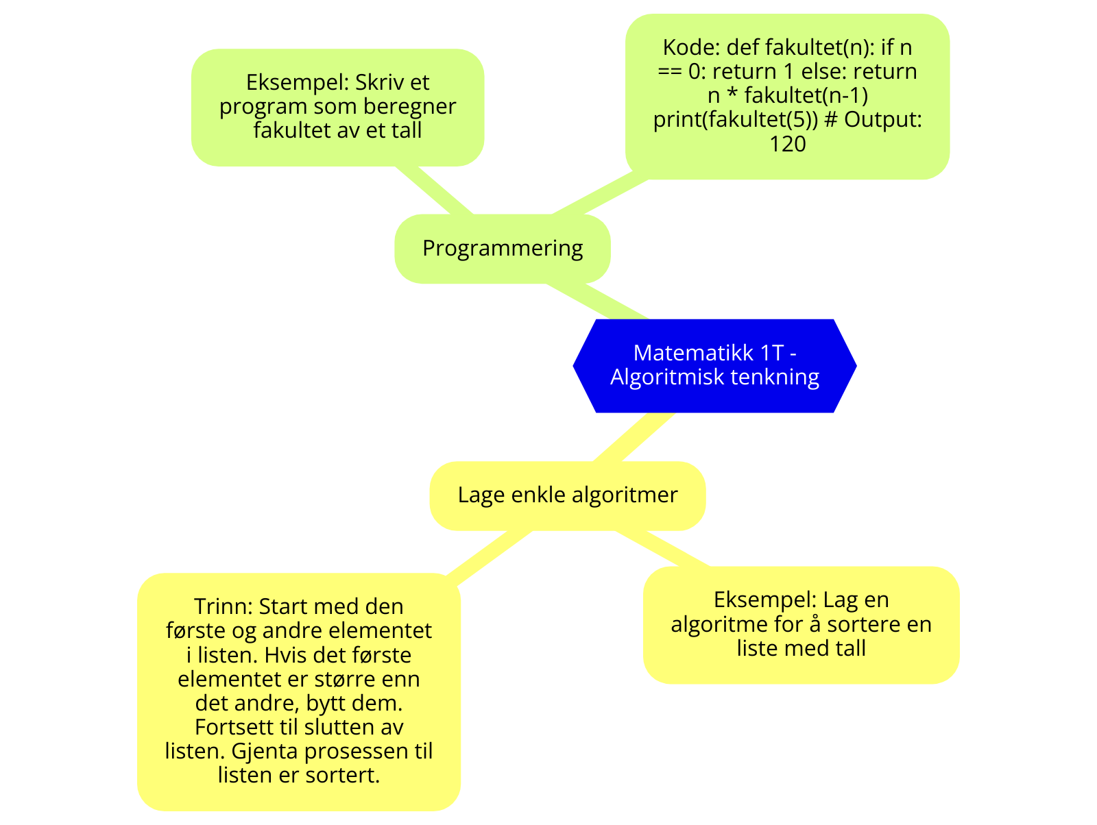 Jeg vil nå lage et tilsvarende tankekart for matematikk 1T.