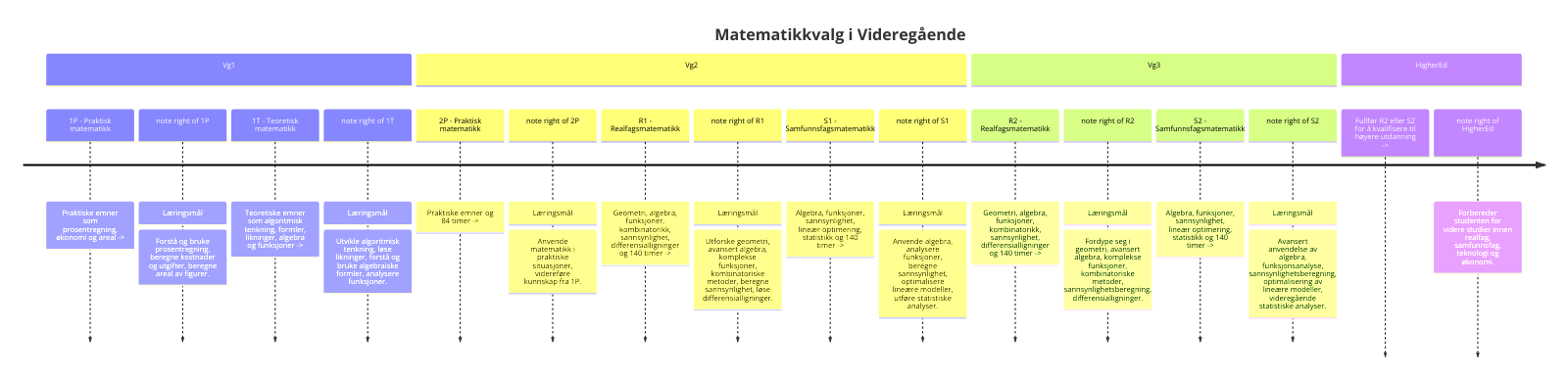 Her er sekvensdiagrammet som illustrerer matematikkvalgene i videregående opplæring med flere detaljer:
