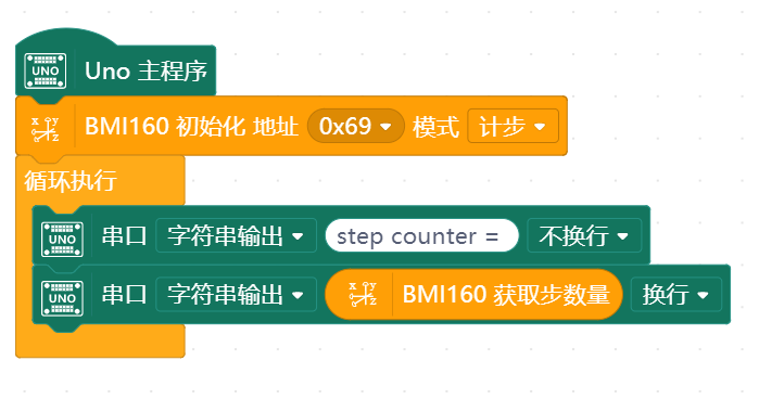 3、“扩展”中选择“主控板”中的“Arduino Uno”,选择"传感器"中的"BMI160 6轴惯性运动传感器"。 详细教程:Mind+基础wiki教程-加载扩展库流程