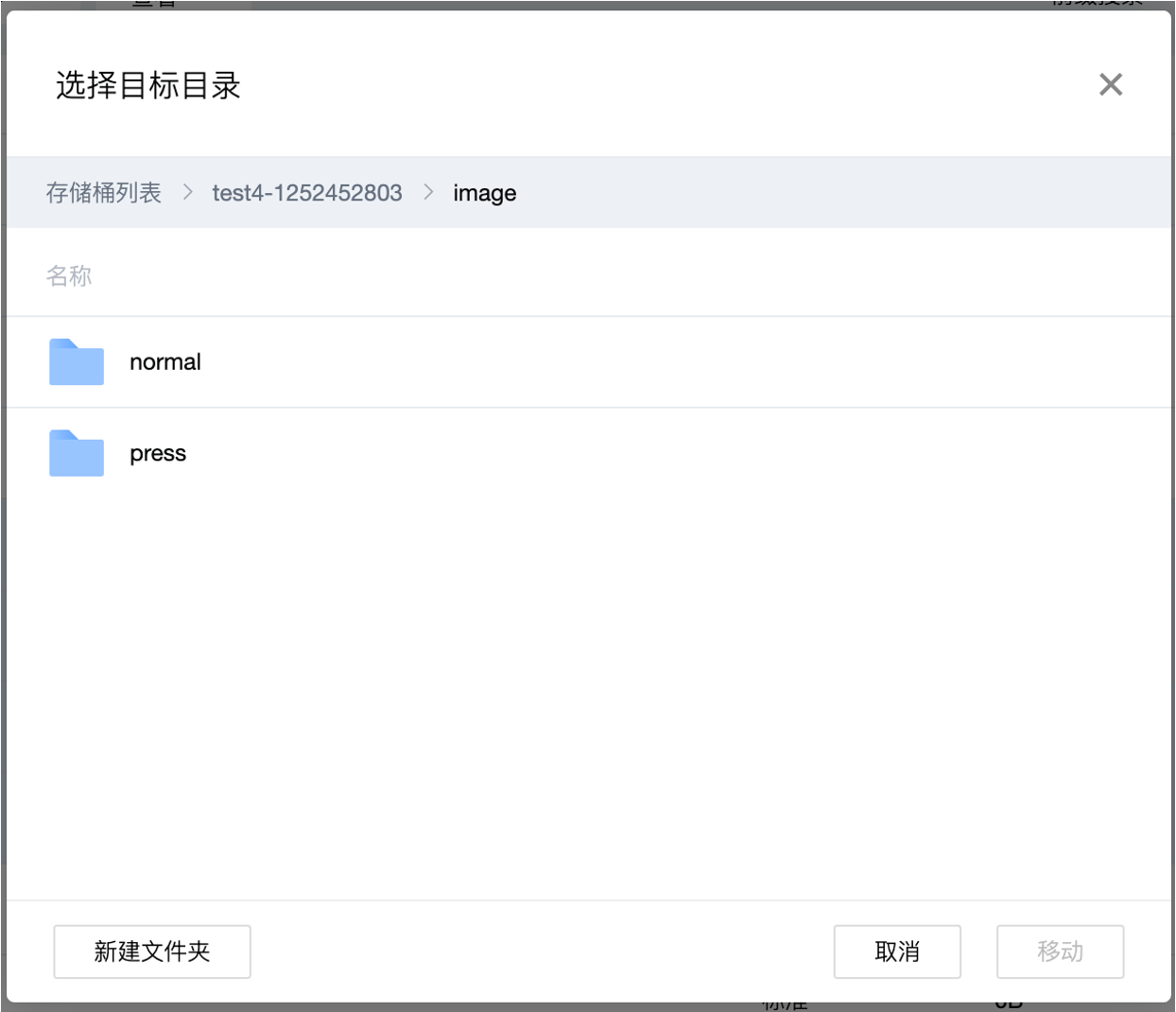 用户可以在指定的存储桶路径内,选中文件/文件夹快速移动到选择的目标路径中。