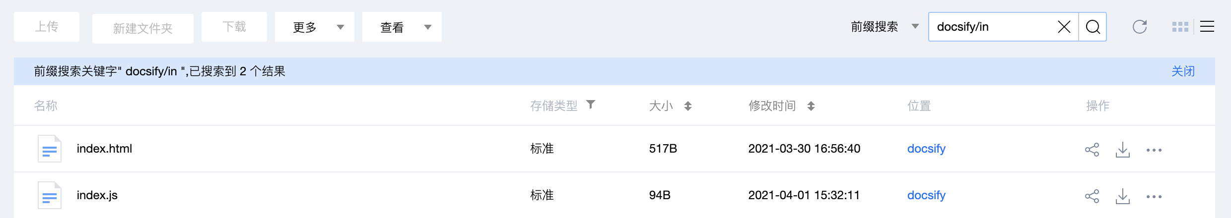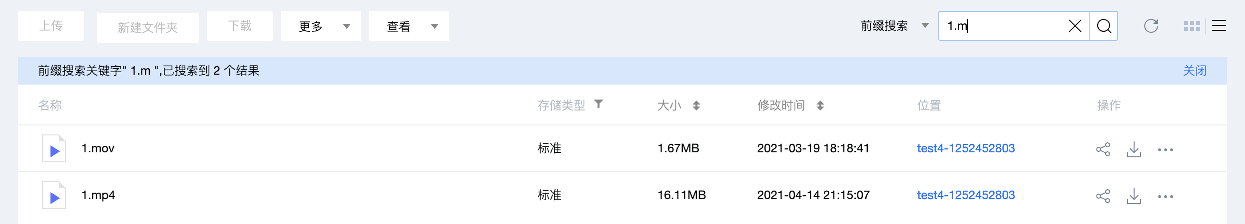 模糊搜索:可根据输入的内容在整个存储桶中进行模糊匹配搜索。