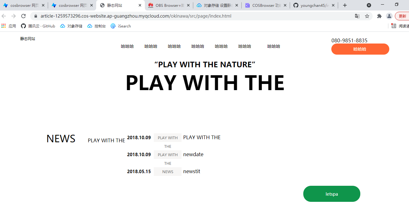 COSBrowser编辑器模式支持以浏览器形式预览静态网站模板/文件,单击![]()