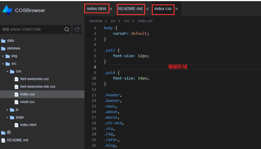 COSBrowser编辑器模式支持对多个文件进行编辑。