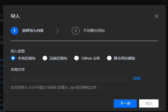 - 支持导入本地压缩包。