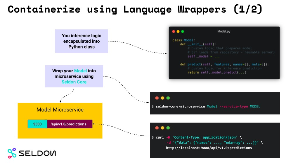 - 语言包装器将模型容器化