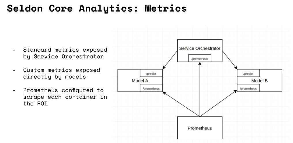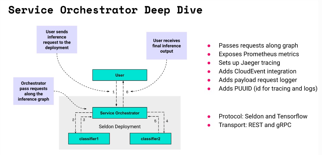 Seldon Deployment,Service Orchestrator - 可以通过利用我们与第三方框架的集成来收集指标和跟踪数据。