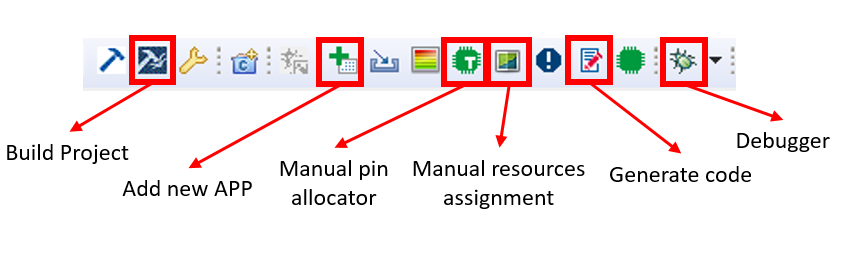 - Manual Pin Allocator is used to assign a pin from the XMC 4700 header to one APP