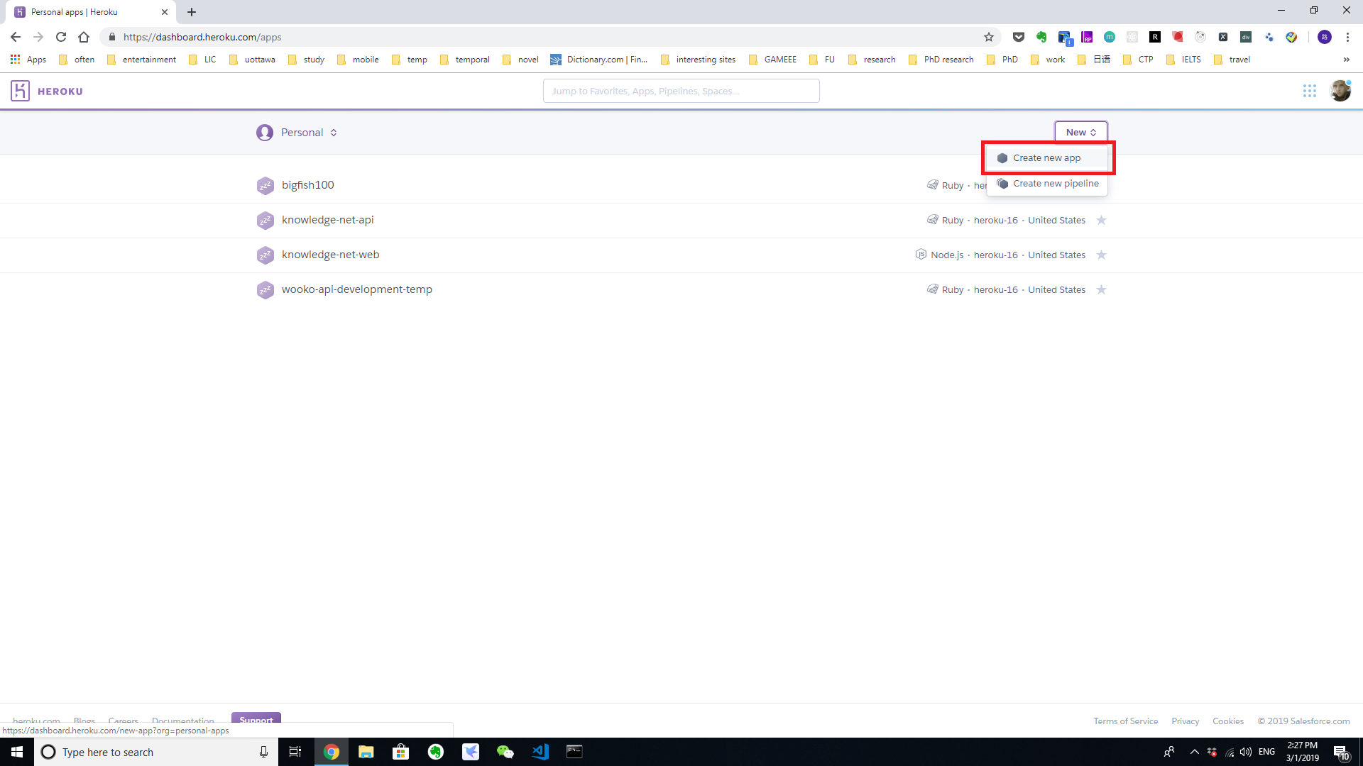 打开heroku.com,你会发现在主页上多了一个服务器,即我们在第3步新建的服务器。
