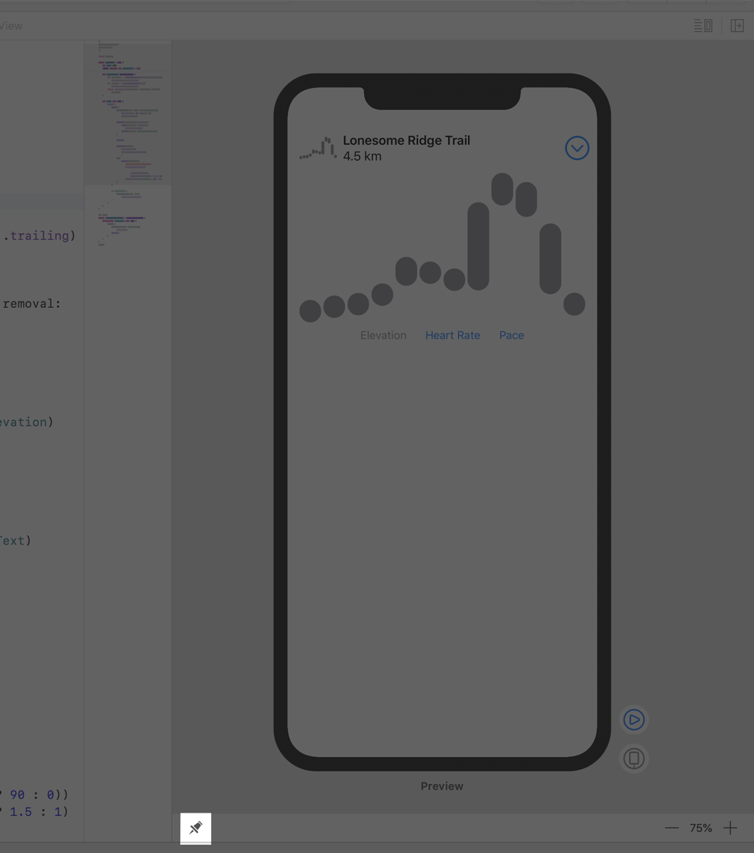 在HikeView.swift中,打开实时预览并尝试显示和隐藏图形。