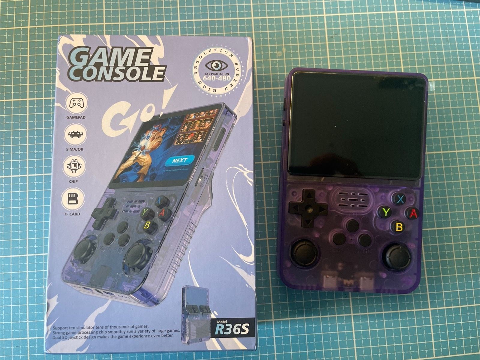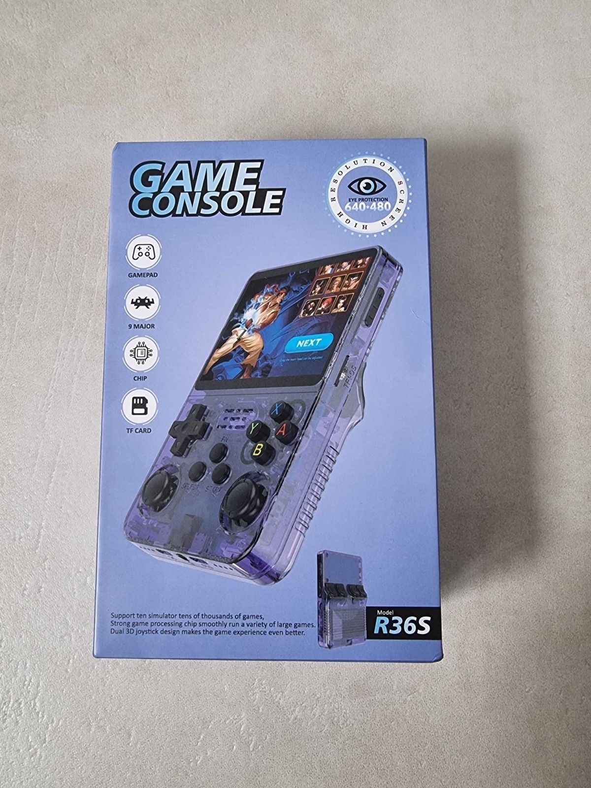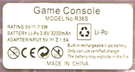 [!NOTE] The R36S has different manufacturers across china. Some devices get shipped without screen protector, quality control sticker and the back sticker. Earlier models even had a typo on the back label, Consoie instead of Console.
