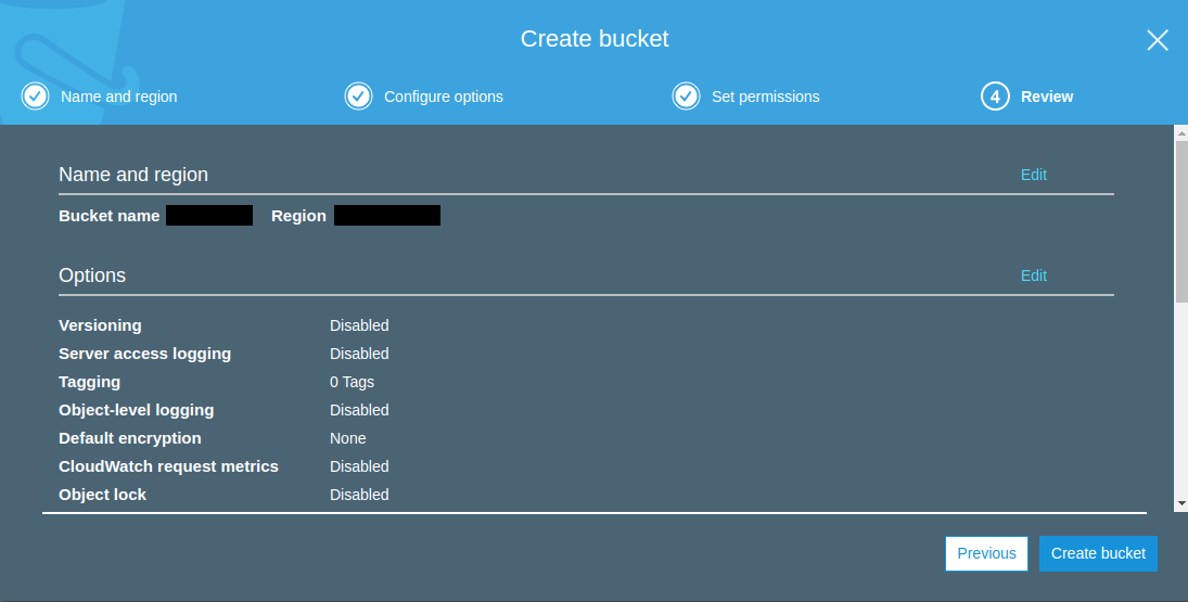 You also need to know the region of your bucket. If you do not have any bucket, you can create it on S3 Console