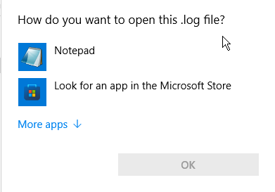 - If a window pops up asking "How do you want to open this .log file?", find Notepad in the list, click it, click OK.
