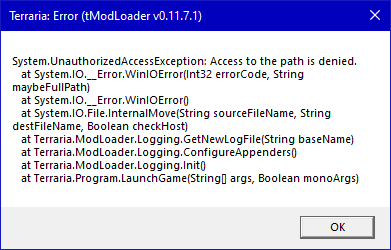 - Close tModLoader, then reopen tModLoader and repeat the steps necessary to trigger the bug.