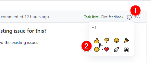 If your issue is not solved by this guide and you still need help first check the tModLoader Issue Tracker and search for your issue to see if it has already been reported. If you find your issue, please add a 👍 reaction to the issue to help us prioritize issues. To add the 👍 reaction, click on the smile icon on the top right, then click on 👍: