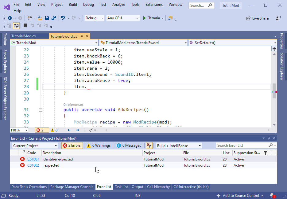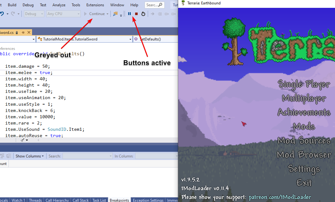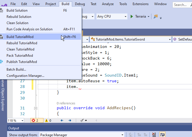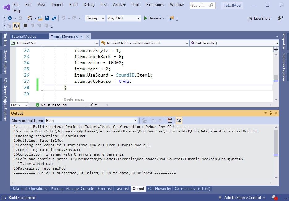 Developing with Visual Studio - mikrono/tModLoaderWiki_kr_ko GitHub Wiki