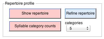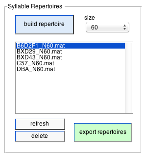 Once created, the repertoire will appear in the list box. - Repertoires can be exported into a CSV file in the repertoire/CSV folder showing for each repertoire unit the number of calls in the data set.