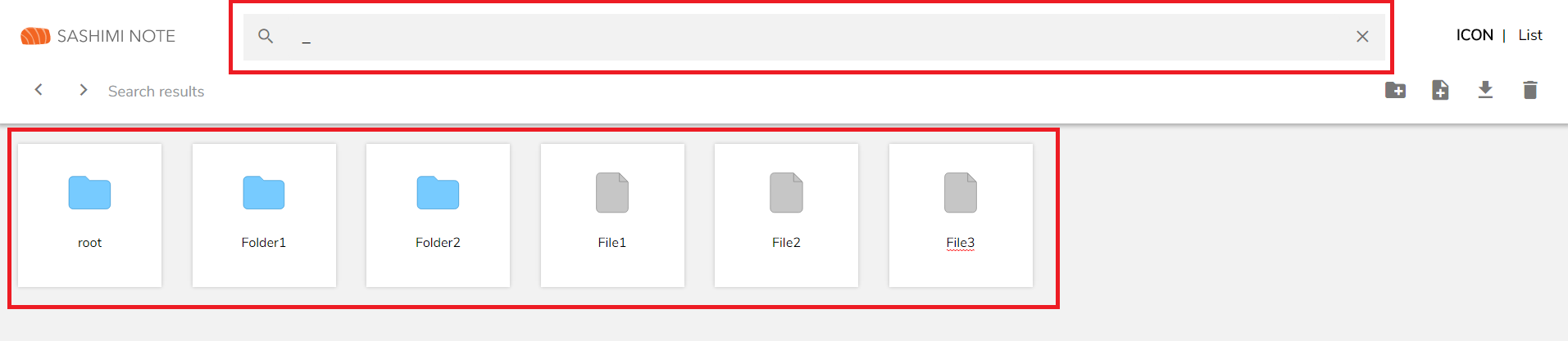 Using SQL wildcard queries like _ and % are allowed in sashimi-note search function.