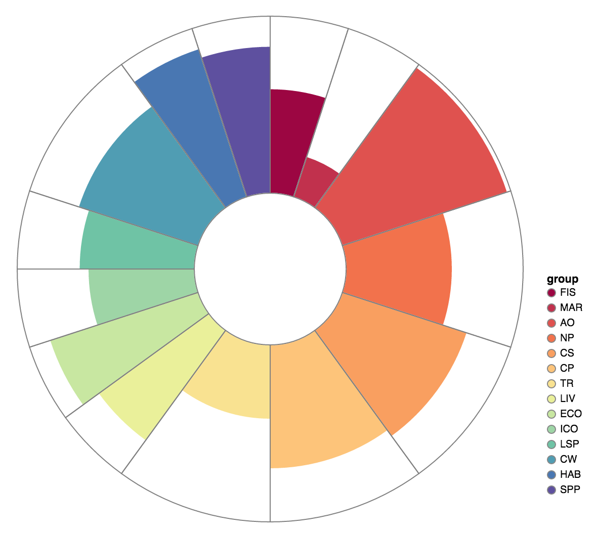 Aster Plot based on d3 example by Randy Zwitch
