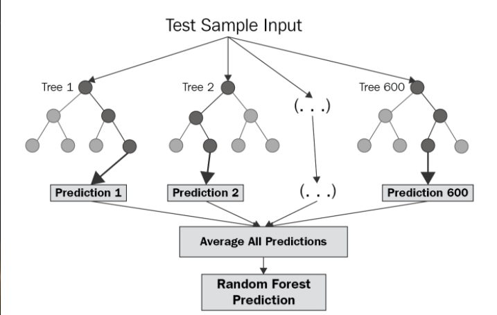 The number of features that can be split at each node is limited to some percentage of the total, which ensures that the ensemble model does not rely too heavily on any individual feature and makes fair use of all potentially predictive features. Each tree draws a random sample from the original data when generating its splits, which adds a further element of randomness that prevents overfitting (unlike decision trees).