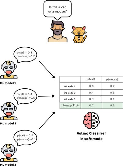 Averaging: Takes an average of predictions from all models to make the final prediction. This technique is used generally for making predictions in regressions problems or calculating probabilities for classification problems.