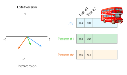 Then for example person Jay, his personality traits can be plotted like this,