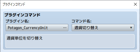 通貨単位切り替え Ver1.3.7(2023/9/11) 2つの通貨単位をプラグインコマンドで切り替えます プラグインコマンドで 通貨切り替え を行った場合に通貨単位が切り替わります ダウンロード(CurrencyUnit.js) |
