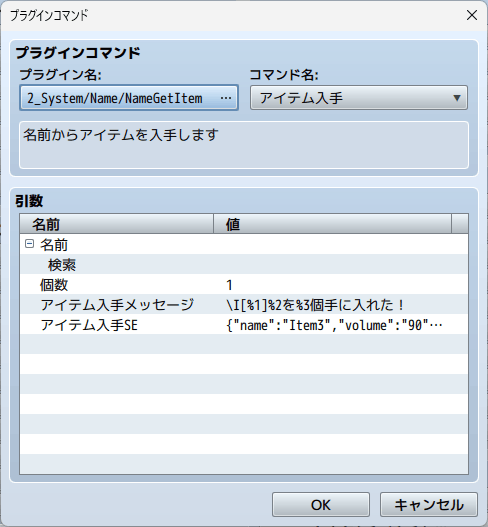 名前アイテム入手 Ver2.0.3(2025/10/2) 名前からアイテムを入手するプラグインコマンドを提供します ダウンロード(NameGetItem.js) |