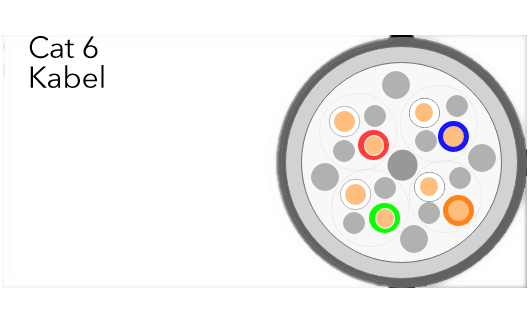 - Bei dem Standard handelt es sich um Twisted-Pair-Kabel, die komplett abgeschirmt sind. Störungen haben hier keine Chance.