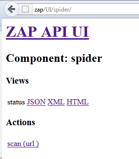 http://zap/XML/spider/action/scan/?url=http%3A%2F%2Flocalhost%3A8080%2Fbodgeit%2F