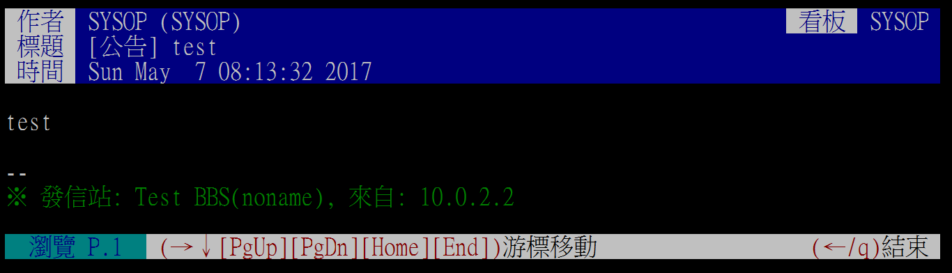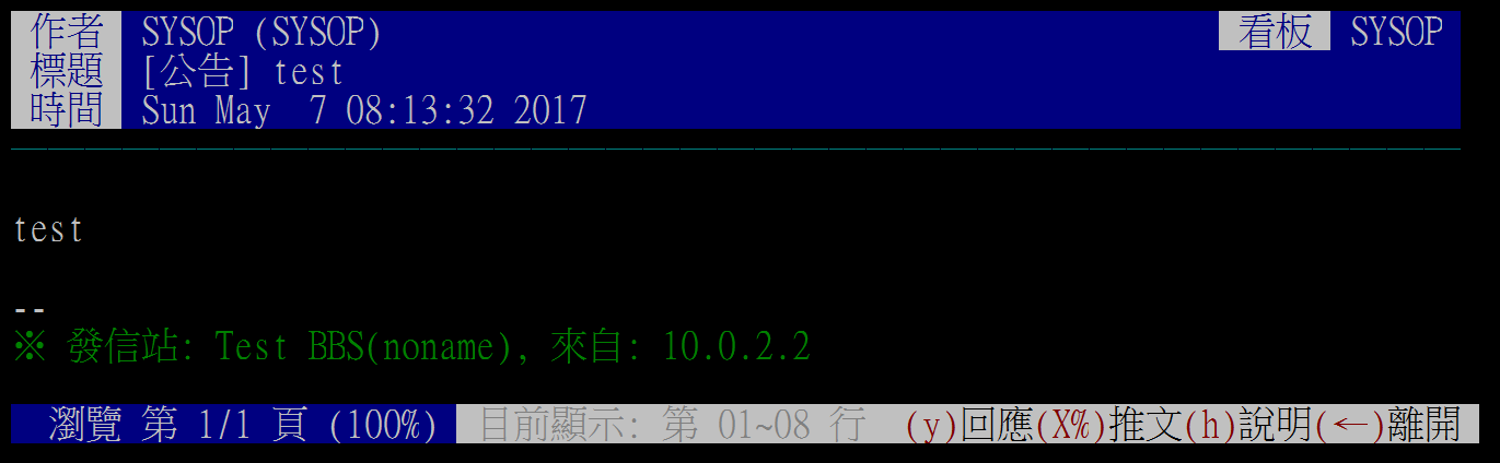 $ cd ~/pttbbs && pmake clean && pmake all install clean- 小提醒,請使用