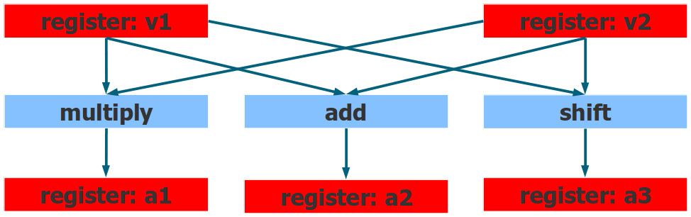 Register renaming: The register names you see in the program, are not the real register names, they are mapped by the CPU to the actual physical registers. The same name, can be mapped to different registers that all have the same size and functionality.
