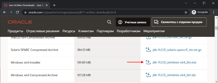 Важно: В последнее время, в связи с блокировкой ресурсов Oracle на территории РФ, скачивание JDK может быть затруднительным. Если вы не смогли скачать JDK с сайта Oracle, воспользуйтесь одним из следующих вариантов: