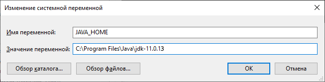 «Значение переменной»ввести путь к папке в которой установлена Java (по умолчаниюC:\Program Files\Java\jdk-17.0.13, уточните текущую версию);