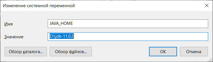 «Значение переменной»ввести путь к папке в которую разархивирован OpenJDK.