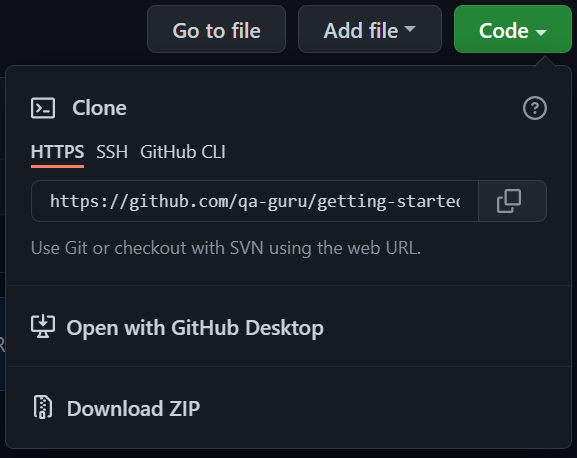 5. Клонирование проекта из GitHub - qa-guru/getting-started-java GitHub Wiki