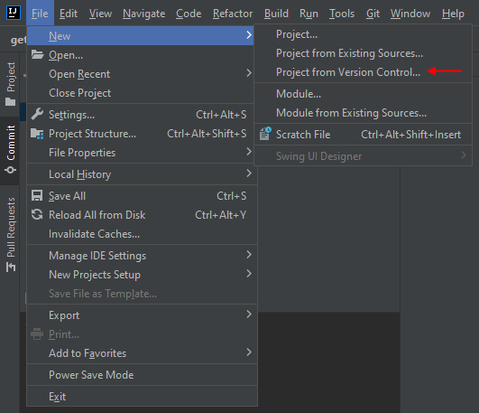 File -> New -> Project from Version Control...;