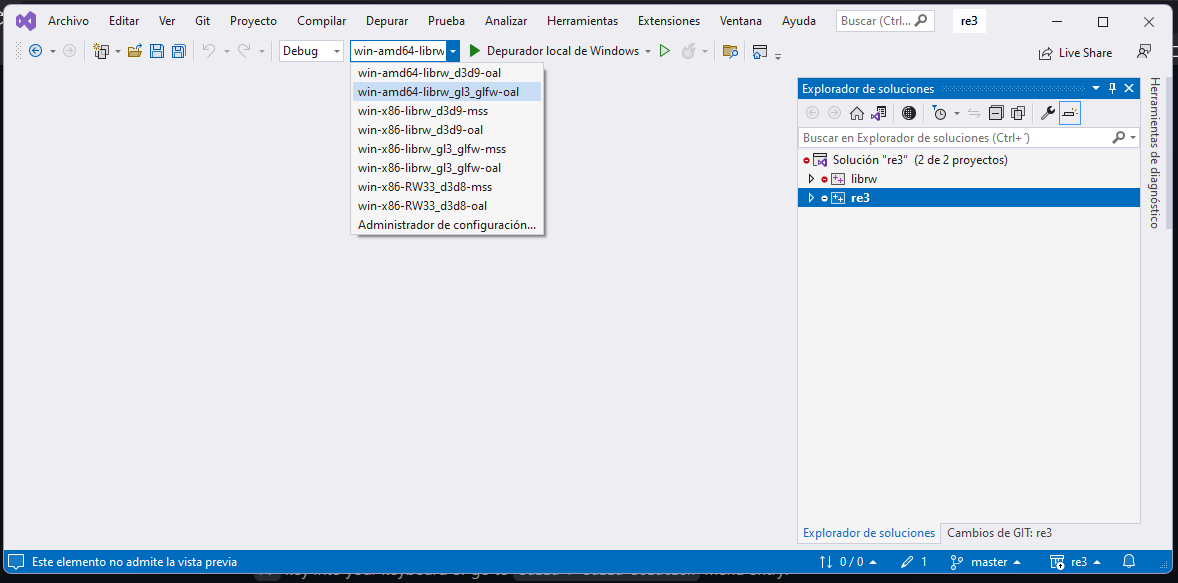 win-x86-librw_d3d9-oalconfiguration to get started. Either pressF7key into your keyboard or go toBuild > Build Solutionmenu entry.