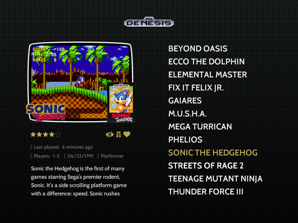 EmulationStation - графическая оболочка для запуска различных ROM'ов и эмуляторов для них. Данную облочку, а точнее ее форк - пропатченную версию под конкретный проект можно найти у Recalbox, batocera.linux, RetroPie.