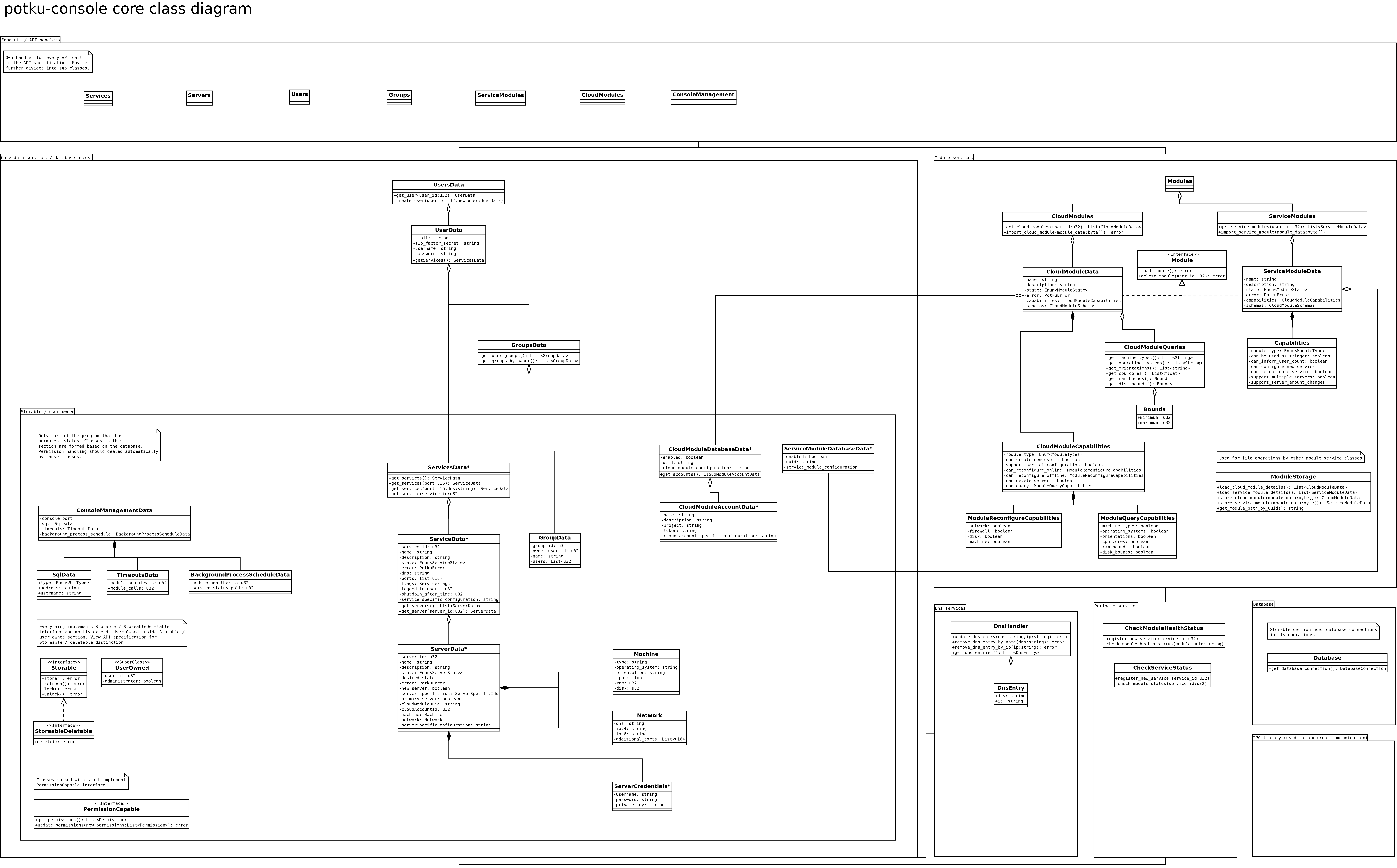 Initial class diagram for potku-console core. Design is subject to change during implementation phase, because some architectural issues require some prototyping before they can be solved.