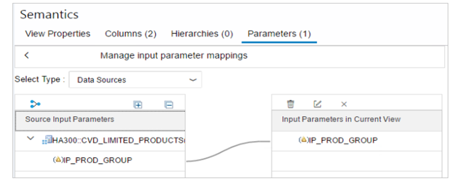 Map input parameters of the underlying data source like calculation views to input parameters of the current calculation view
