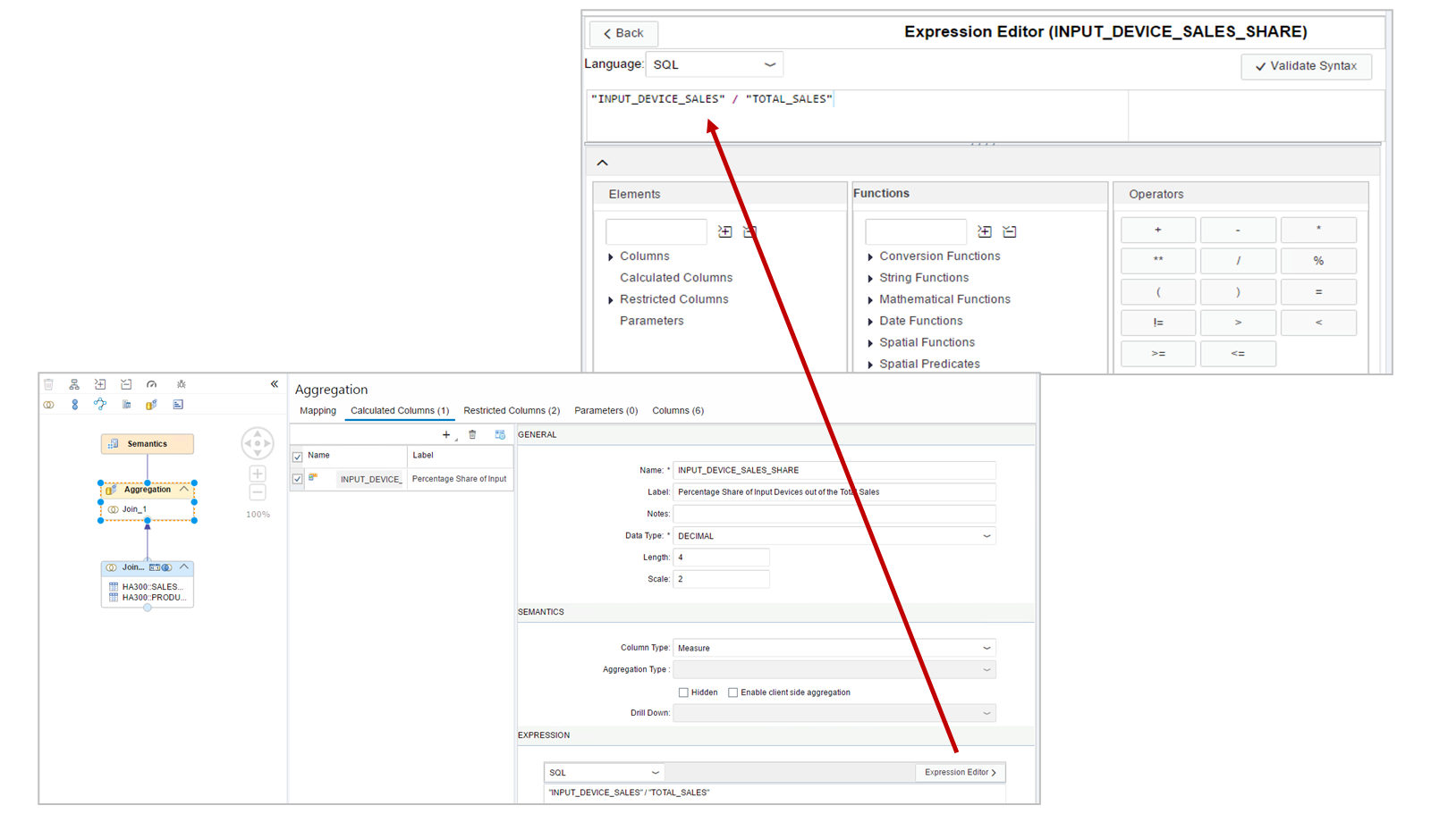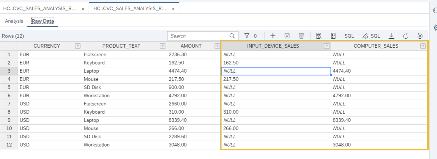 If the user selects GROSS, the calculated column (of type Measure) will display the GROSS_AMOUNT measure in the AMOUNT column. Any other selection will result in NET_AMOUNT being displayed.