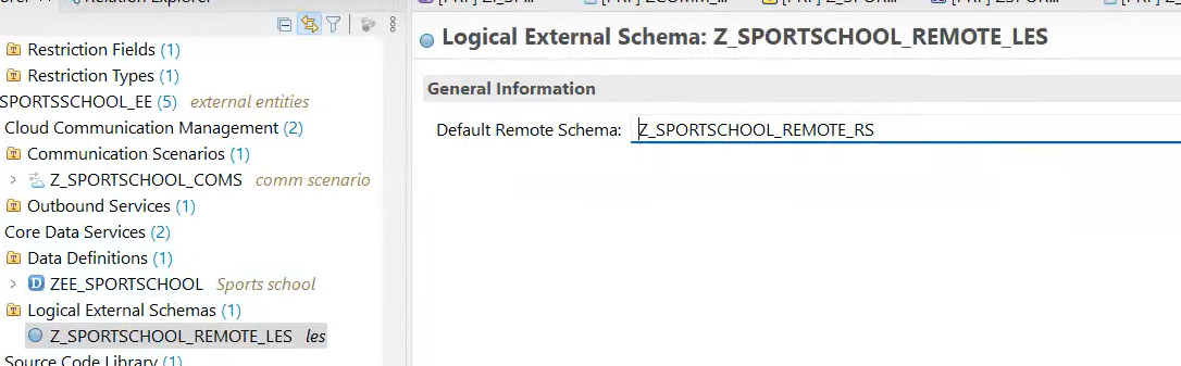 define external entity ZEE_SPORTSCHOOL external name SPORTSSCHOOL //same as virtual table name