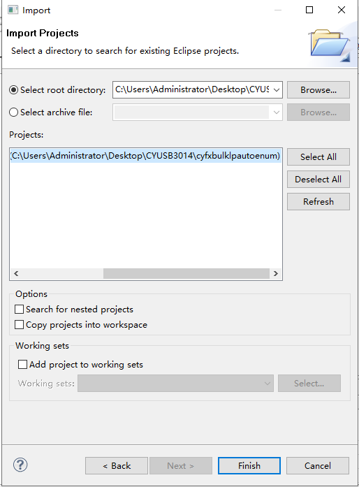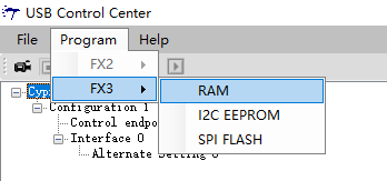 其中RAM类似FPGA中JTAG调试,烧写到其他两种芯片需要看FX3芯片外围接口芯片是什么,根据需求选择,我们目前还是在调试,所以选择烧写到RAM中。