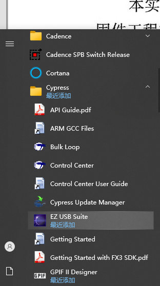 在开始菜单内选择Cypress-->Eclipse-->EZ USB Suite: