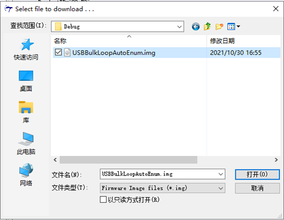 选择在上一节基础上生成的固件(Debug文件夹下):