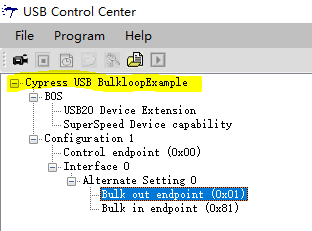 在上面操作没问题的情况 下:工作窗口中原先的Cypress USB BootLoader就编程了我们下载固件的名字(Cypress USB BulkLoopExample)。