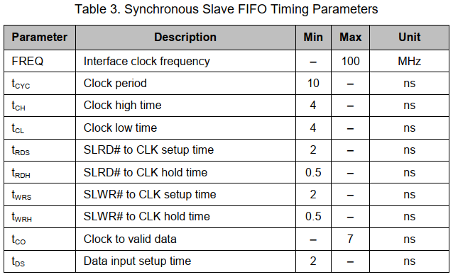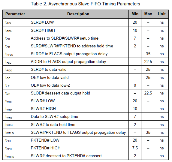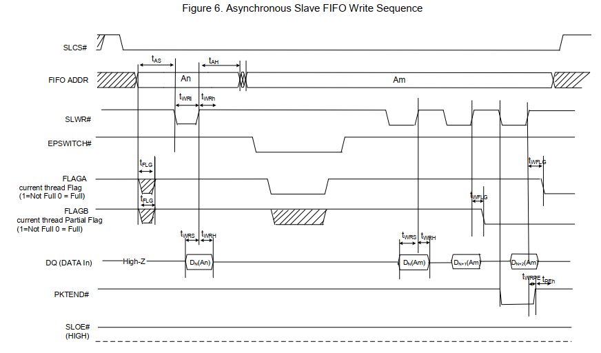 - SLWR的解除断言#导致数据从数据总线写入FIFO,然后FIFO指针递增。