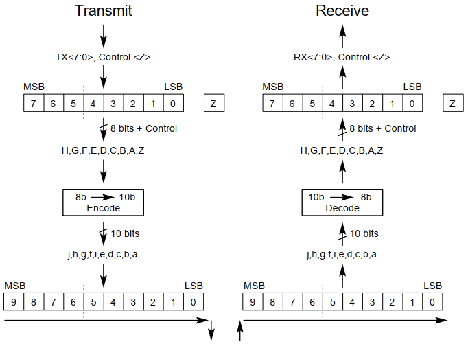 USB3.0使用8b/10b传输代码。该传输代码的定义与ANSI X3.230-1994(也称为ANSI INCITS 230-1994)第11条中规定的定义相同。
