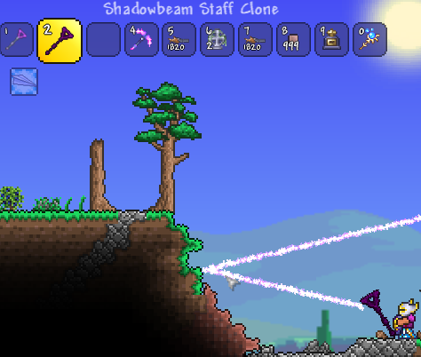 Shadowbeam is a pretty neat weapon that shoots a projectile that bounces several times instantaneously. Lets make a weaker version of the Shadowbeam Staff and then attempt to customize the look of the projectile.