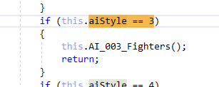 Great, we now know to search the source code for aiStyle == 3: